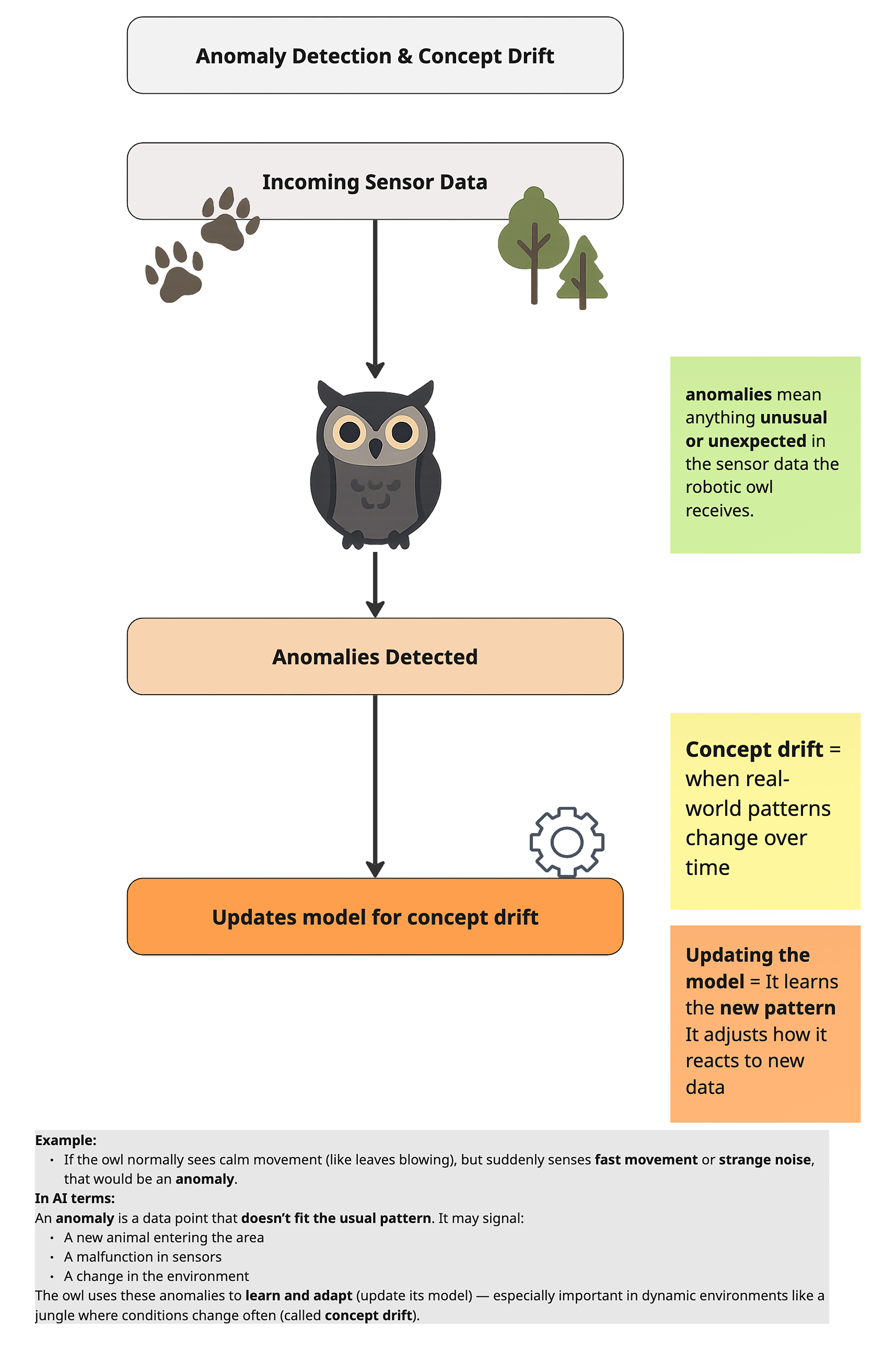 - Concept drift means the Owl’s software must be updated continuously—like routine calibrations to keep sensors accurate.